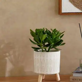 Felix Terracotta Planter with Wood Stand 14x14x16cm - White — Price History & Tracker | DeserTracker