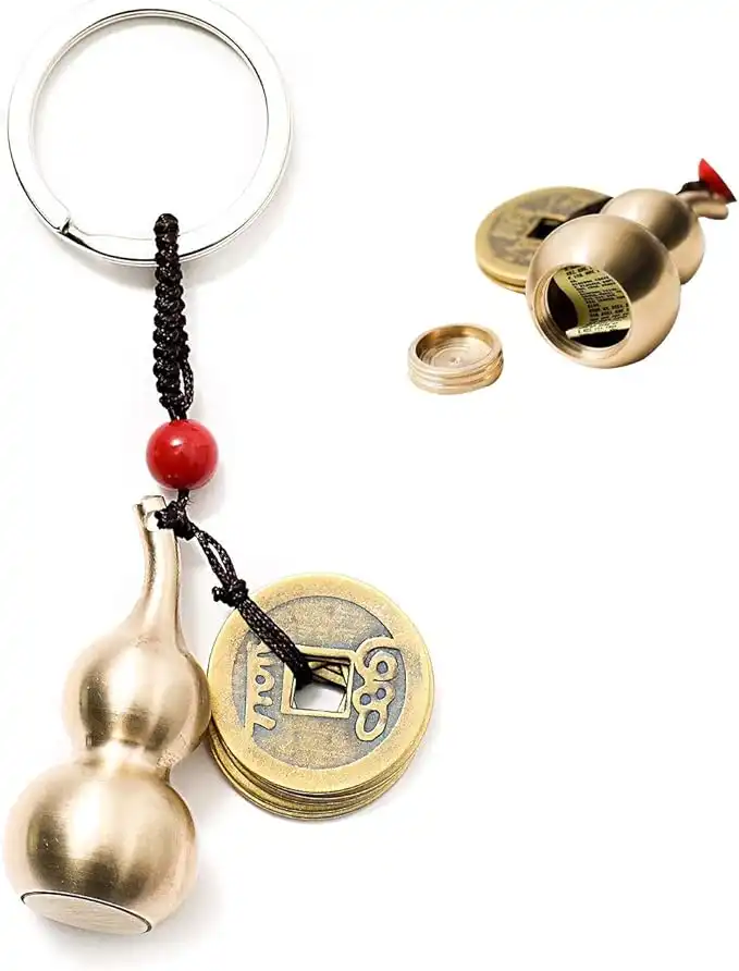Feng Shui Coins with Brass Calabash Wu Lou Key Chain for Longevity Travel Safely Wealth Porsperity Success and Good Luck with Blessing Paper in it — Price History & Tracker | DeserTracker