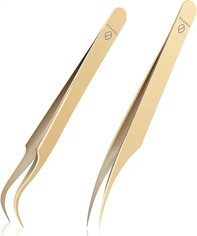 amazon.aeFERYES Lash Tweezers for Eyelash Extensions, Professional Dolphin & Boot Tweezers, Stainless Steel Lash Extension kit, Volume Precision Eyelash Tweezer with Tin Box, 2 Pcs, Gold-plated