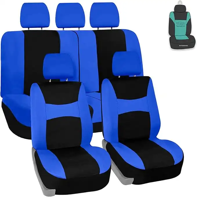 FH Group Fb030115 Light & Breezy Flat Cloth Full Set Car Seat Covers Set Airbag & Split Ready W Gift Black Fit Most Car Truck Suv Or Van Universal Blue