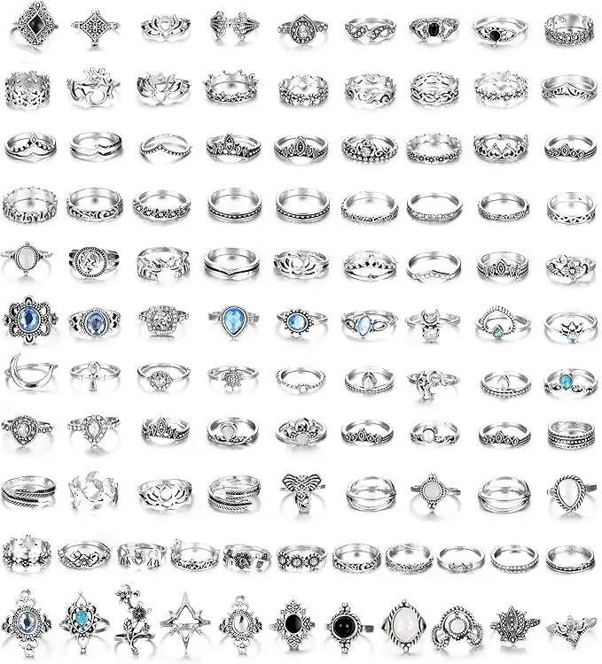 FIBO STEEL 101 Pcs Vintage Knuckle Rings for Women Stackable Midi Finger Ring Set, Stainless Steel,Alloy — Price History & Tracker | DeserTracker