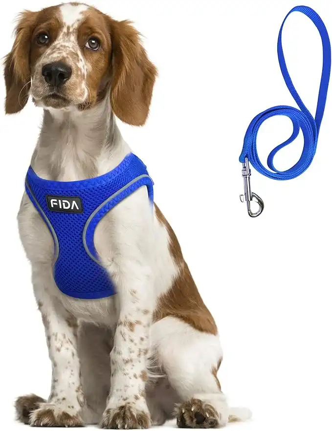 Fida Comfy Dog Harness with Leash, Soft Puppy Vest Escape Proof, Breathable Lightweight Soft Mesh, Adjustable Reflective Step-in Harness for Small & Medium Pet Walking (L, Blue) — Price History & Tracker | DeserTracker