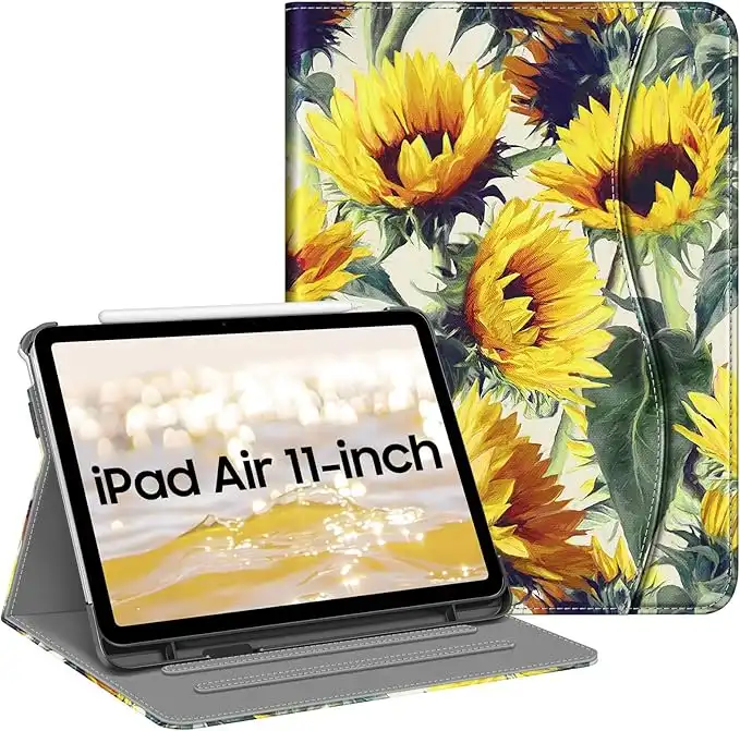 FINTIE Case for iPad Air 11 inch (2024) M2, iPad Air 6th / 5th / 4th Generation (2024/2022/2022) - [Multi-Angle Viewing] Folio Stand Protective Cover with Pencil Holder & Pocket, Sunflowers