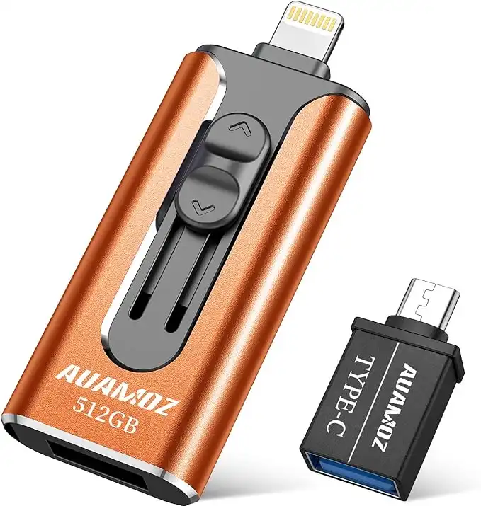 Flash Drive for iPhone 512GB, AUAMOZ USB iOS Memory Stick Photo Stick External Storage Thumb Drive for iPhone iPad Android Computer (Orange) — Price History & Tracker | DeserTracker