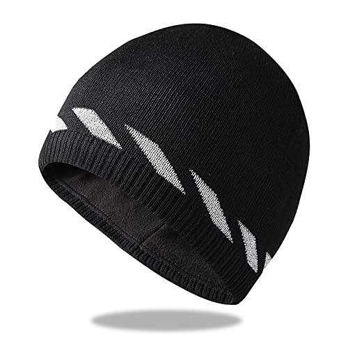 Fleece Hats for Men Windproof Stretchy Winter Knit Beanie Caps Outdoors Skiing Running, Black-a, One size