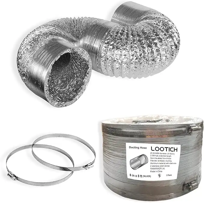 Flexible Aluminium Exhaust Pipe Ventilation Sheath Diameter 204 mm Length 2.5 m Connection Kit for Bathroom Kitchen Dryer with 2 Steel Clamps — Price History & Tracker | DeserTracker