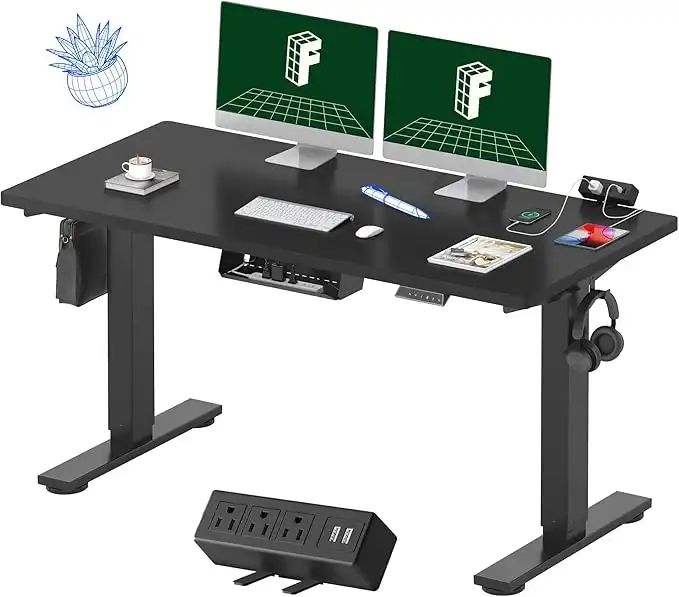 amazon.aeFLEXISPOT EN2 Whole-Piece Standing Desk with Clamp Power Strip, 55 x 28” Electric Stand Up Height Adjustable Desk with Cable Management (Black Frame + 55" Black Top, 2 Packages)