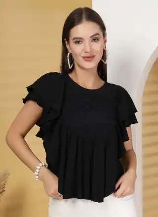 Flutter Sleeve Black Cotton Top for Women — Price History & Tracker | DeserTracker