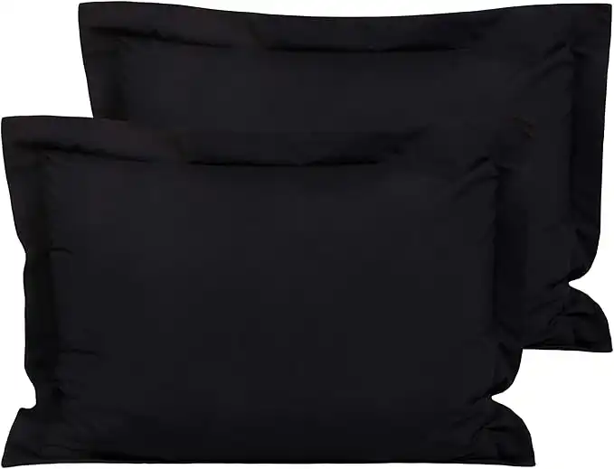 FLXXIE Microfiber Standard Pillow Shams Set of 2, Fade, Wrinkle and Shrinkage Resistant Soft Pillow Covers with Envelope Closure Euro Sham Covers (Black, 20x26 Inches)