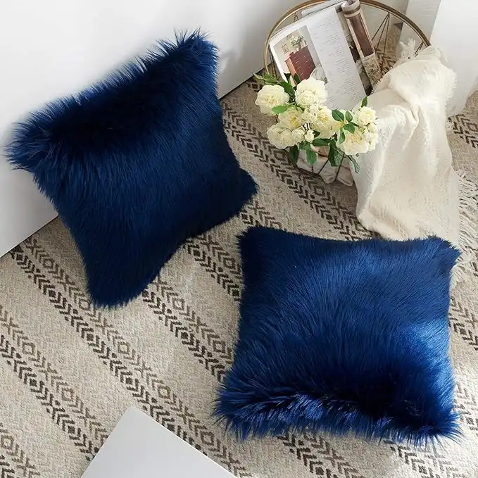 amazon.aeFoindtower New Luxury Mongolian Plush Faux Fur Square Decorative Throw Pillow Cover Cushion Case Merino Style for Livingroom Couch Sofa Nursery Bed Home Decor 18"x18",2 pieces new fur pillow cover_03-