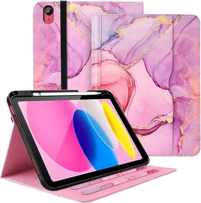 for iPad 10th Generation Case 2022, iPad 10 th Gen 10.9'' Protective Cover with Pencil Holder, Multi-Angle Viewing Stand, Pocket Design, Folio Leather Cases for Women Girls, Marble Rose Gold — Price History & Tracker | DeserTracker