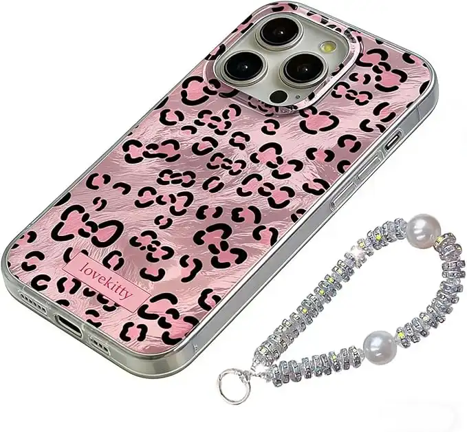 for iPhone 15 Pro Max Case with Bracelets, Glitter Cute Design Leopard Pattern [Charm Shine Wrist Chain] Silicone Hard PC Phone Cover for 15 Pro Max Women Girls (Pink, 15 Pro Max) — Price History & Tracker | DeserTracker