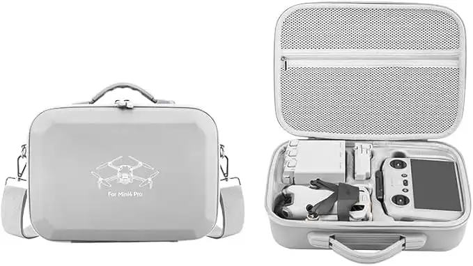 For Mini 4 Pro RC 2 Case, Large Capacity Portable PU Leather Storage Bag for DJI Mini 4 Pro Fly More Combo Drone RC2 Controller Kit Accessories (Grey)