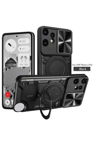 noon.comfor Nothing CMF Phone 2 Pro / cmf by NOTHING Phone 2 Pro Case, Slide Camera Lens Cover, Magnetic Ring Holder Kickstand Protective Phone Case for Nothing CMF Phone 2 Pro / cmf by NOTHING Phone 2 Pro, Black