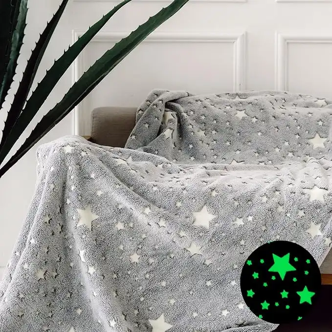 FORESTAR Glow in The Dark Throw Blanket, Christmas Fun Gift for Girls Boys Kids, Premium Super Soft Fuzzy Fluffy Plush Furry Throw Blanket (130cm x 150cm Grey)