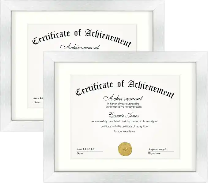Frametory, 11x14 Certificate Frame with Mat for 8.5x11, Back Hangers for Wall Mounting, Display for Certificates, Documents, Awards, Acknowledgements, Wide Molding (Silver, 2-Pack) — Price History & Tracker | DeserTracker