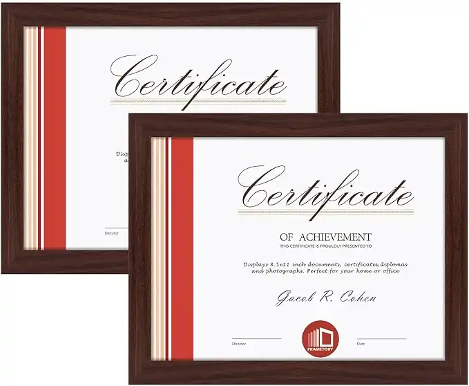 Frametory, 8.5 X 11 Certificate Frame with Back Hangers for Wall Display, Easel Stand Picture Frame for Diploma, Documents, Awards, Wide Molding (Walnut, 2-Pack) — Price History & Tracker | DeserTracker