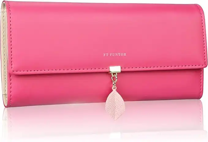 FT FUNTOR PU Leather Wallet for Women RFID Blocking Ladies Leaf Pendant Coin Zipper Long Purse with Multiple Card Slots and Card Holders Phone Pocket (L-Rose Red) — Price History & Tracker | DeserTracker