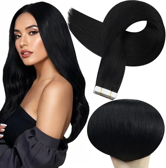 amazon.aeFull Shine Seamless Tape in Real Hair Extensions Color 1 Jet Black Double Sided Tape in Hair Extensions Human Hair 12Inch Short Remy Extension Cut Layered Style 30G 20Pcs Adhesive Tapes ins Thick End