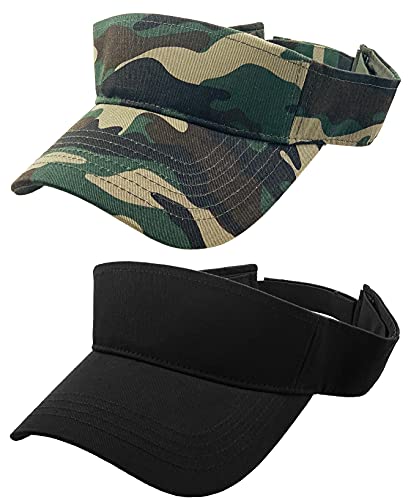 Funky Junque Vintage Distressed Visor Hat Bundle: Black & Camo (2 Pack)