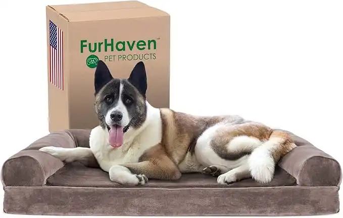 amazon.aeFurhaven Cooling Gel Dog Bed for Large Dogs w/Removable Bolsters & Washable Cover, For Dogs Up to 95 lbs - Quilted Sofa - Toasted Brown, Jumbo/XL