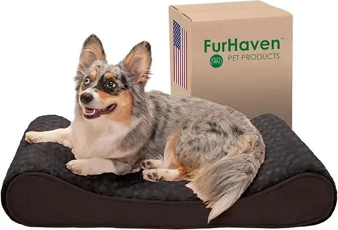 Furhaven Cooling Gel Dog Bed for Medium/Small Dogs w/Removable Washable Cover, For Dogs Up to 23 lbs - Ultra Plush Faux Fur & Suede Luxe Lounger Contour Mattress - Chocolate, Medium