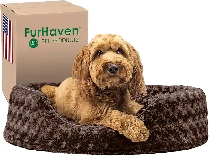 Furhaven Dog Bed for Large/Medium Dogs w/Removable Washable Cover & Pillow Cushion Insert, For Dogs Up to 30 lbs - Ultra Plush Faux Fur Oval Lounger - Chocolate, Large — Price History & Tracker | DeserTracker