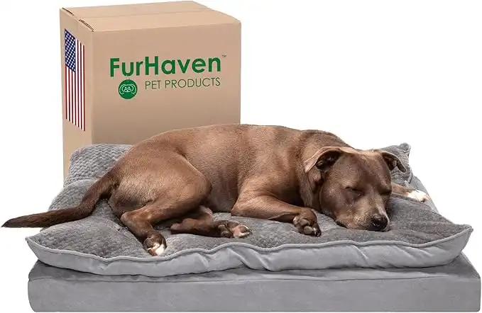 amazon.aeFurhaven Large Orthopedic Dog Bed Ultra Plush Faux Fur & Suede Mattress w/Removable Washable Cover - Gray, Large