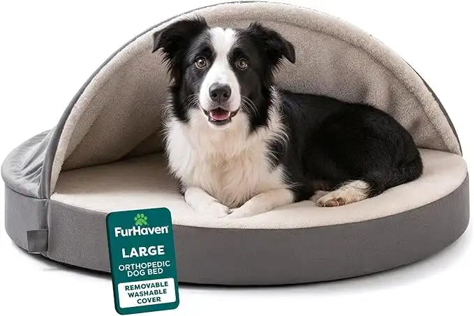 Furhaven Pet Dog Bed - Orthopedic Round Cuddle Nest Faux Sheepskin Snuggery Blanket Burrow Pet Bed with Removable Cover for Dogs and Cats, Gray, 35-Inch — Price History & Tracker | DeserTracker