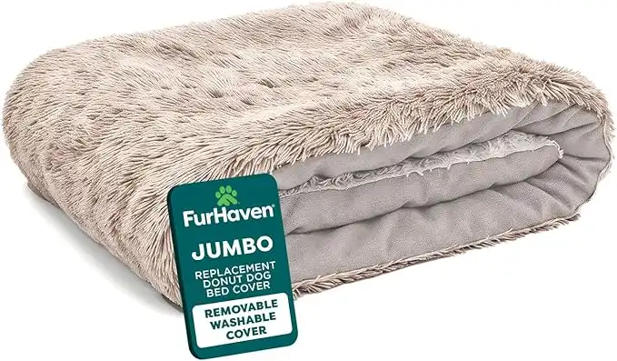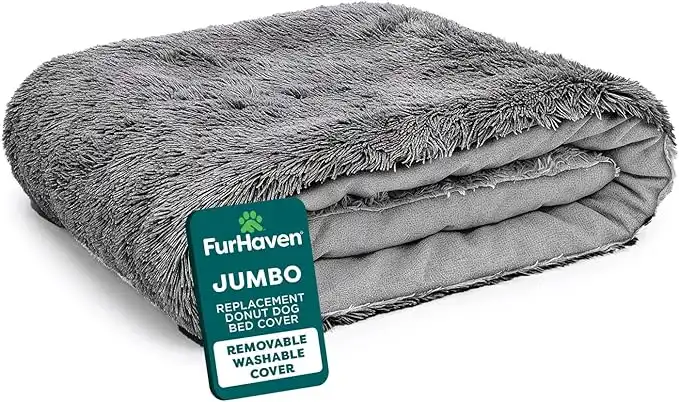 amazon.aeFurhaven Replacement Donut Dog Bed Cover Plush Long Faux Fur Calming Cuddler, Machine Washable - Gray, Jumbo (X-Large)
