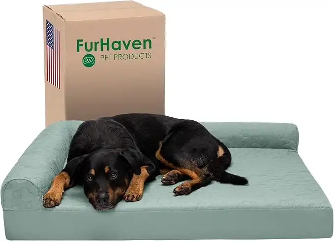 amazon.aeFurhaven XL Memory Foam Dog Bed Pinsonic Quilted Paw L Shaped Chaise w/Removable Washable Cover - Iceberg Green, Jumbo (X-Large)