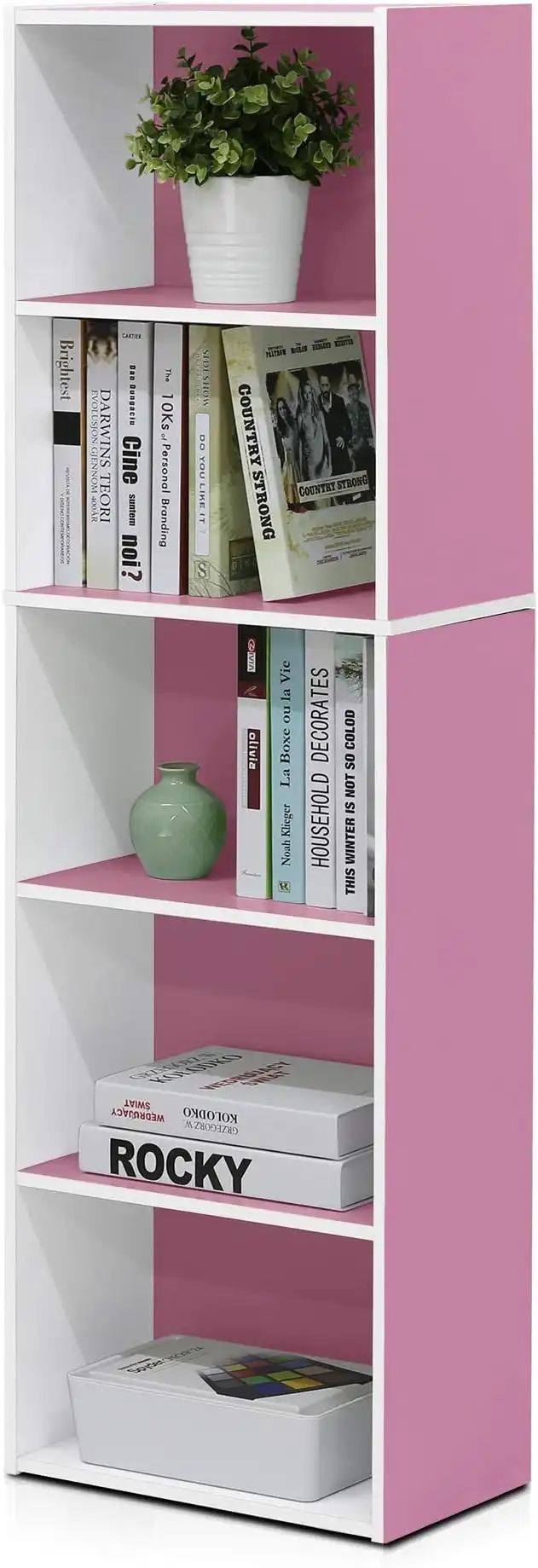 amazon.aeFurinno 5-Tier Reversible Color Open Shelf Bookcase, White/Pink 11055WH/PI