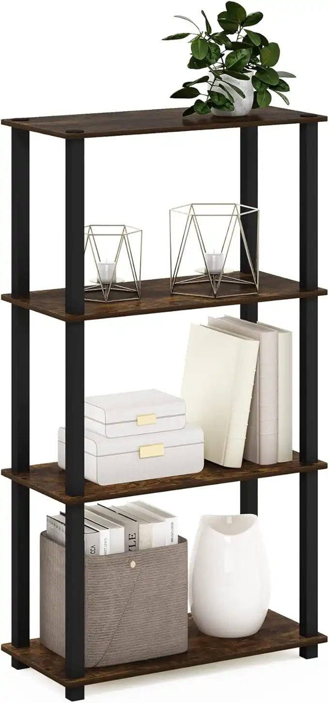 Furinno Turn-S-Tube 4-Tier Compact Multipurpose Shelf Display Rack with Square Tube, Amber Pine/Black — Price History & Tracker | DeserTracker