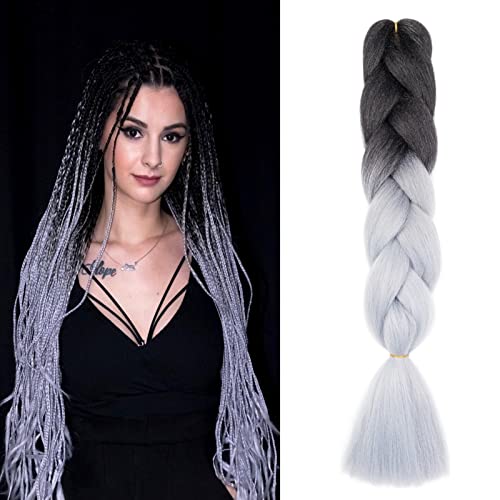Gairyan Jumbo Braids Extensions 1 Piece Braiding Hair 60 cm Ombre Synthetic Hair for Braiding Afro Hair for Box Braids/Crochet Braids (Black and Silver Grey)