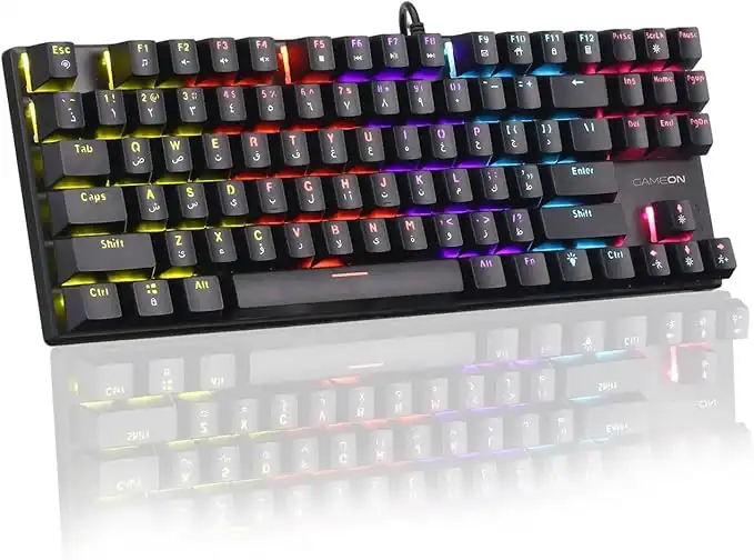GAMEON KENORA GOMK87-RS 80% RGB Mechanical Wired Gaming Keyboard, Red Switches, English & Arabic Layout, USB-C, Hot-Swappable, Customizable RGB, Anti-Ghosting, Gaming & Work