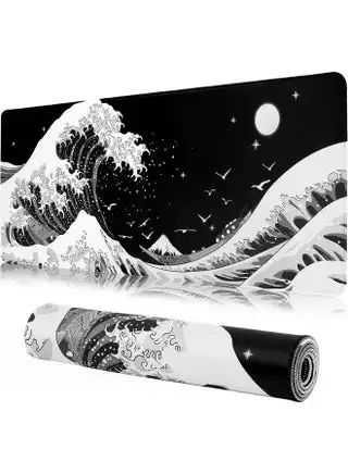 noon.comGaming Mouse Pad, 800 x 300 x 30MM Extended Large Mouse Pad for Desk, Large Sea Wave Mousepad Laptop,Black White Japanese Anime Mouse Mat, Long XXL Waterproof Keyboard Pads With Stitched Edges, Big Non-Slip Mouse Pads for Game Office Home