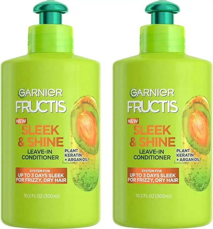 Garnier Fructis Sleek & Shine Leave-In Conditioning Cream for Frizzy, Dry Hair, Plant Keratin + Argan Oil, 10.2 Fl Oz, 2 Count (Packaging May Vary)