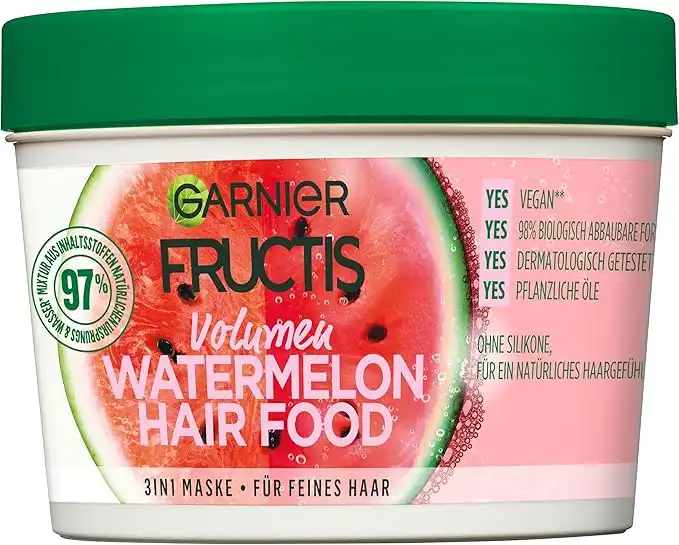 Garnier Hair Mask, Watermelon Hairfood, Moisturising 3-in-1 Mask, Gently Detangles Fine Hair and Gives Unrivalled Shine, Fructis, 390 ml — Price History & Tracker | DeserTracker