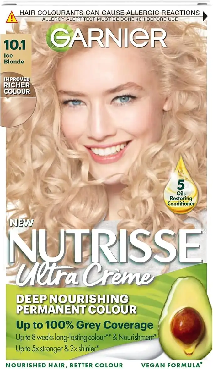 Garnier Nutrisse Permanent Hair Dye, Natural-looking, hair colour result, For All Hair Types, 10.1 Ice Blonde — Price History & Tracker | DeserTracker