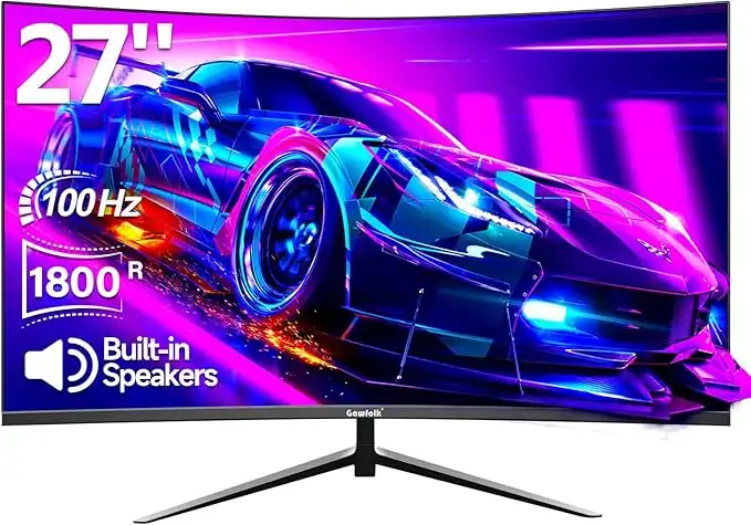 Gawfolk 27" inch Gaming Monitor FHD 100Hz Curved 1800R Frameless Computer Display Screen 1080P(1920×1080) 100% sRGB 300cd/m² Suitable for office, home and entertainment Built in Speaker