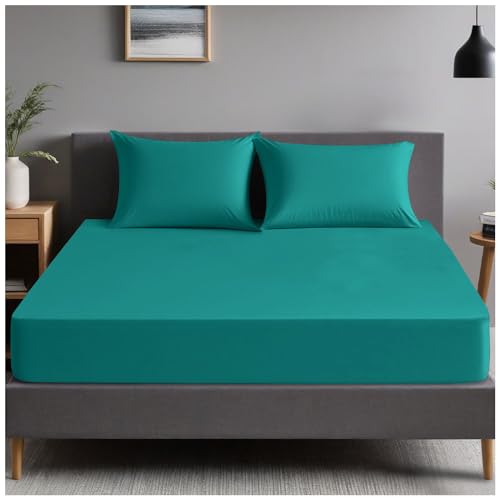 GC GAVENO CAVAILIA Plain Dyed Bedding Fitted Bedsheets, Soft & Comfy Double Bed Sheet, Breathable Non Iron Percale Sheets, Deep Teal — Price History & Tracker | DeserTracker