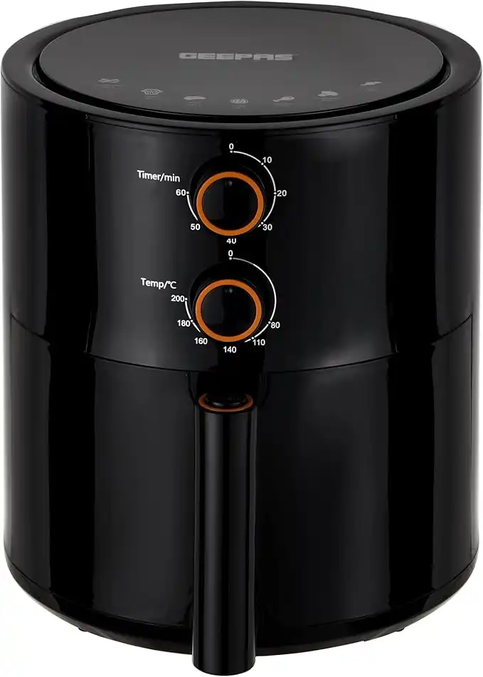 Geepas Air Fryer- GAF37513/ 4.0 L Pot, Non-Stick Coating, with Vortex Frying Technology/Multiple Function, 1-60 Min Timer, Temperature 80-200 Degree Celsius|2 Years Warranty, Black
