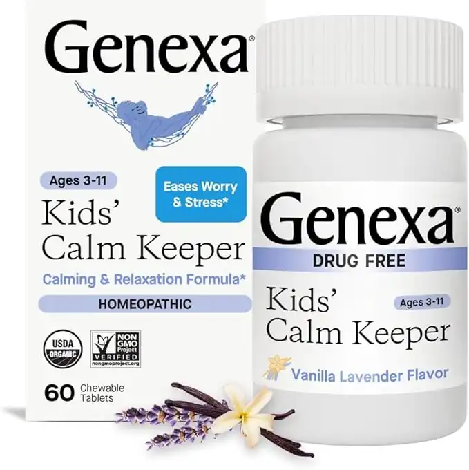 amazon.aeGenexa Kid’s Calm Keeper | Stress Relief for Children | Eases Worries & Tensions| Natural Vanilla & Lavender Flavor | Certified Vegan, Gluten Free, & Non-GMO | 60 Chewable Tablets for Ages 3-11