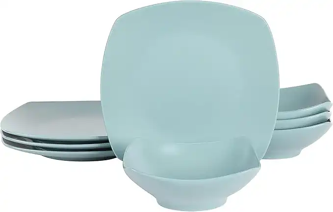 Gibson Home Zen Buffet Matte Porcelain Chip and Scratch Resistant Plates and Bowls Dinnerware Set - Blue, Service for 4 (8pcs)