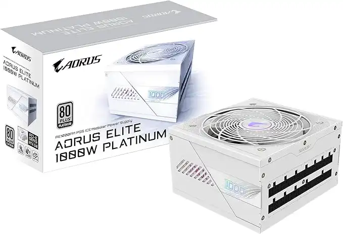 GIGABYTE AORUS Elite P1000W Ice Power Supply - PCIe 5.0, 80 Plus Platinum, Fully Modular Design, 120mm Fan, ATX 3.0 Compatible, EU Plug