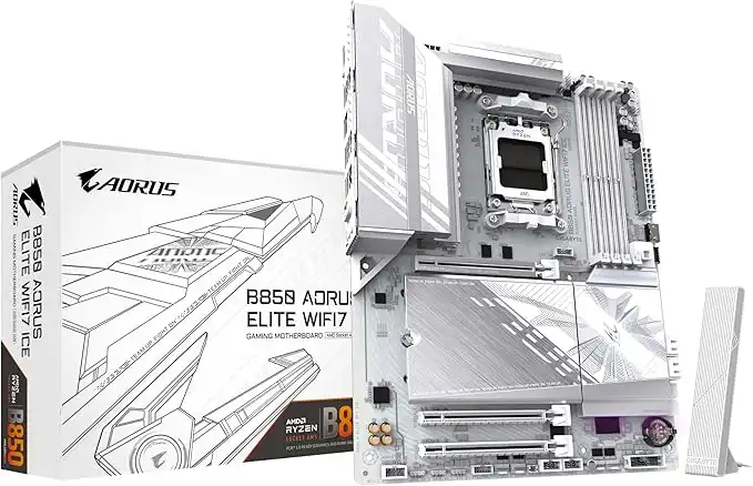 GIGABYTE B850 AORUS Elite WIFI7 Ice Motherboard - AMD Ryzen 9000 Series Processors, 12+2+1 Phase Digital VRM, up to 5200MHz DDR5 (OC), 1xPCIe 5.0 + 2xPCIe 4.0 M.2, LAN 2.5, WiFi 7, USB 3.2 Gen 2x2