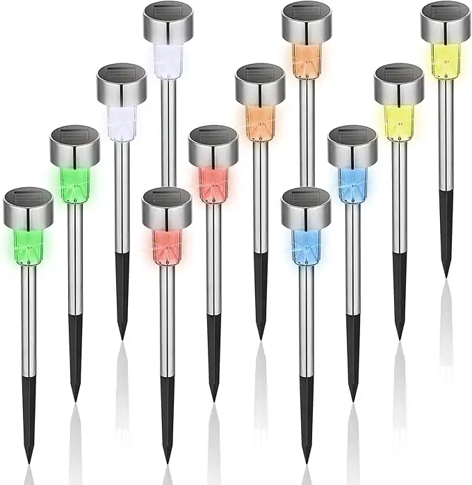 GIGALUMI 12Pack Solar Christmas Lights Outdoor Waterproof, Solar Lights Outdoor, Yard Decoration Garden Led Light Landscape Pathway Lights Stainless Steel