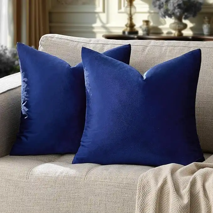 GIGIZAZA Blue Decorative Throw Pillow Covers, 20x20 Velvet Square Solid Couch Pillows for Bedroom Set of 2 Modern Home Decor Super Soft Cushion Pillowcases — Price History & Tracker | DeserTracker