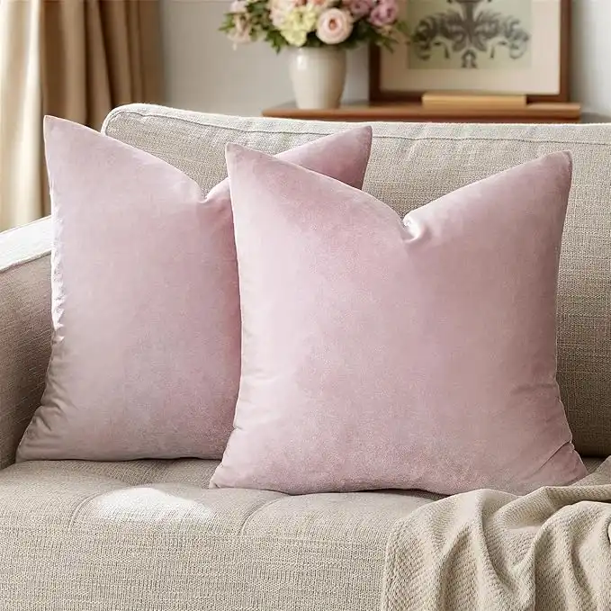 GIGIZAZA Decor Throw Couch Pillow Covers,Blush Pink Sofa Cushion Pillow Covers,Velvet Pillow Cases 24 x 24inch