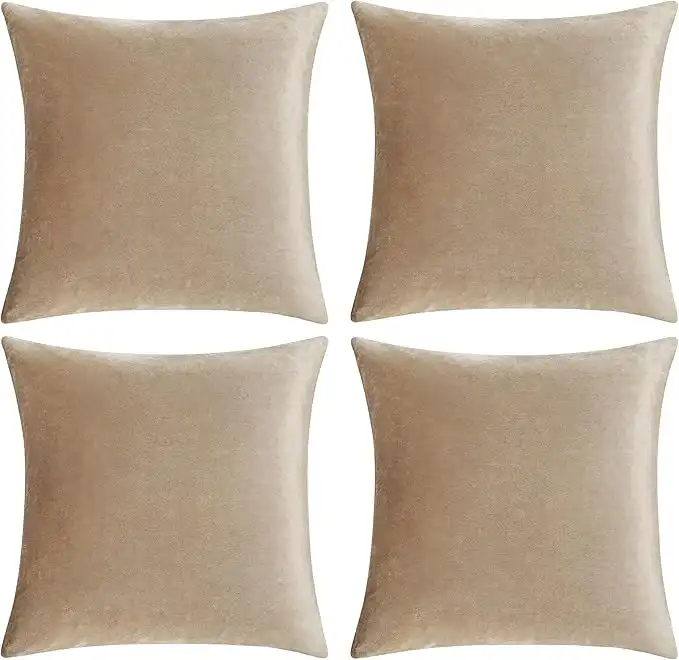 amazon.aeGIGIZAZA Decorative Throw Pillow Covers 18 x 18, Taupe Beige Khaki Soft Pillow Covers Velvet,Set of 4 Decor Square Cushion Covers